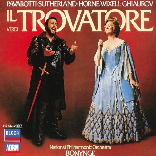 An early CD. Verdi's Il Trovatore has been described as Verdi's last, best, look to the past before he would continue on the path set in with Luisa Miller and Rigoletto - which is a simplification but fact is, Joan Sutherland sings here as if she is in a Rossini opera, with vocal pyrotechnics that have little to do with the drama or her character's state of mind. Everything else, from conductor to chorus to Pav and the other singers, and the SQ, are absolutely top tier. This opera has not been lucky on record, and all round this remains one of the best recordings. Personally, I continue to have a weak spot for the old Erede / Tebaldi / Del Monaco recording from the 50s.