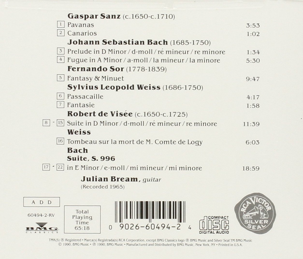 Some feint accompanying background hiss in places on this 1960's recording but it takes nothing away from the pieces or Bream's wonderful skills.