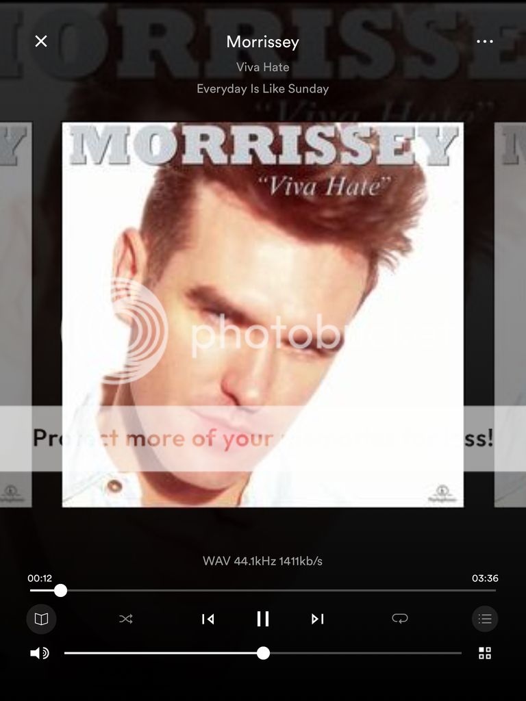 I've not played Moz's Viva Hate for about ten years and was only prompted to by this thread. Hilary hates his 'droning on' voice, but she's out shopping in Southsea.... While I think the Smiths were totally marvellous, and got better and better, Morrissey's albums, after Viva Hate and Bona Drag, which are in my view brilliant, just seemed to get worse and worse as time wore on. It's such a shame, as a lyricist he is virtually peerless, but without the music of Johnny Marr, it was downhill all the way.