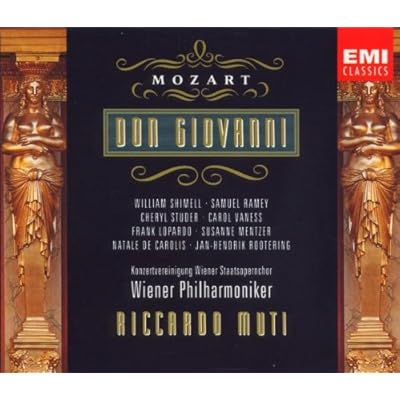 A humorless Don Giovanni. Can it be done? Haitink came a long way in his famous recording with Tom Allen and Carol Vanness, but Riccardo Muti really went all out and came up with an intense, focused performance in which nobody has a good time, and the Don's descent at the end is not spectacle, but unavoidable dread (although it is very spectacular with the chorus coming through much more clearly than usual). The singers, again with Vanness (this time as Elvira) and with a young William Shimell singing a brutish, rough-edged Don Juan off of the cynical Leporello of Sam Ramey are nowhere near as lovely voiced as the famous versions by Giulini or Böhm but fit the approach well. I love this recording, the only blemish is the cavernous sound the EMI engineers came up with.